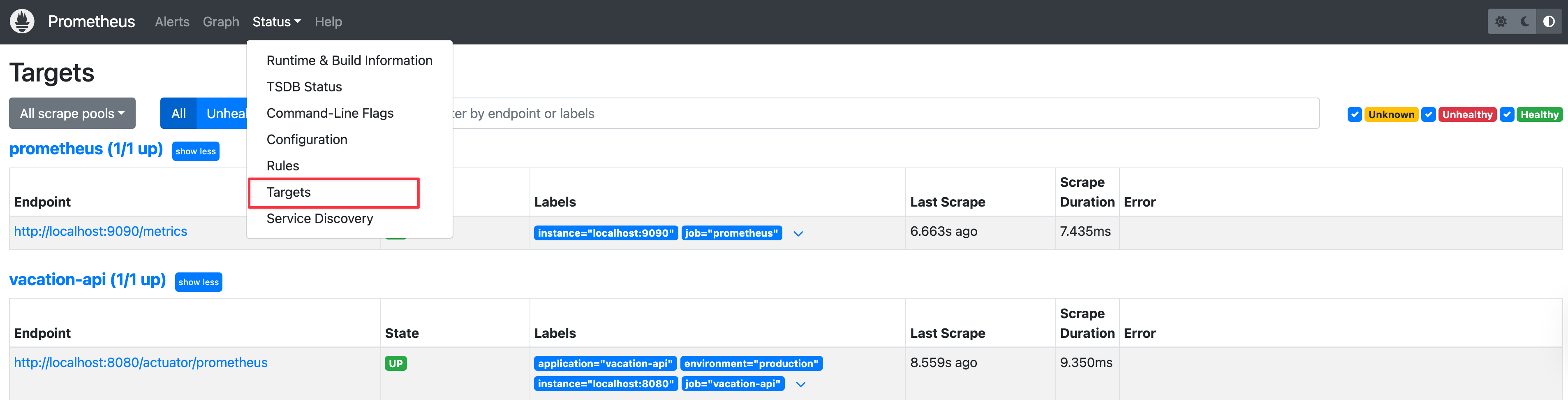 - targets: ['localhost:9090']
