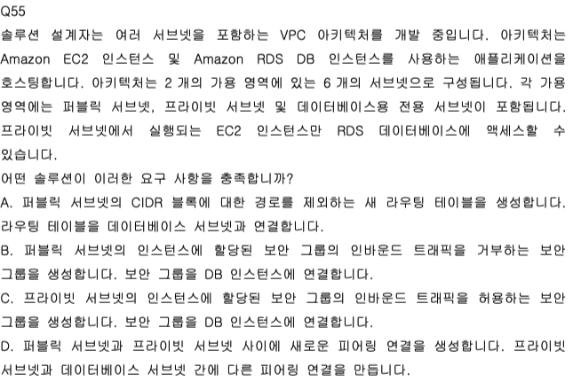 즉, “RDS에는 프라이빗 서브넷 EC2만 접속 가능하게” 만족하는 방법을 고르는 문제다.