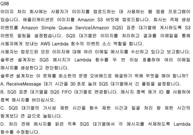 큐 타입 변경, 코드 수정, 새 리소스 없이 SQS 가시성 제한 시간만 조정하면 된다.