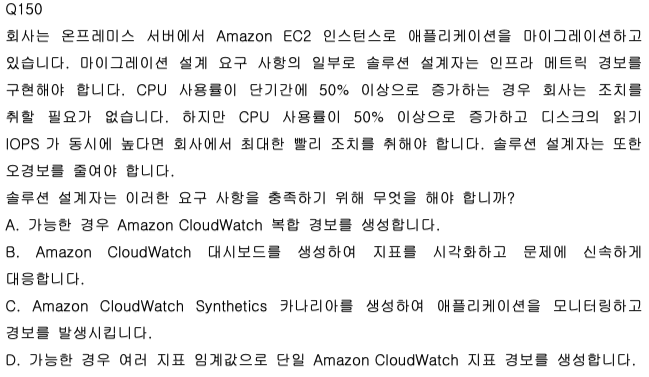 - CloudWatch에서 CPU·디스크 IOPS 지표를 사용할 수 있으면(EC2 상세 모니터링·EBS 지표 등) 복합 경보를 만들 수 있음.