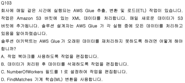정리하면, 오래된 데이터 재처리 방지 = Glue Job Bookmarks 사용이 정답이다.
