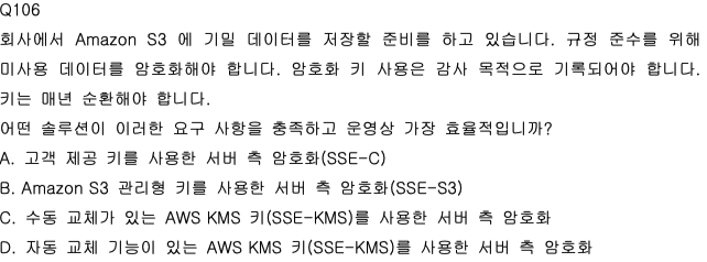 D. 자동 순환이 있는 AWS KMS 키(SSE-KMS) 를 사용한 서버 측 암호화