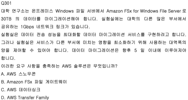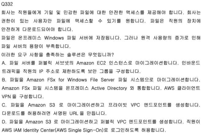 백엔드가 S3가 아니라 FSx이므로, “데이터를 S3로 마이그레이션” 및 “S3 수명 주기 정책” 요구사항과 맞지 않음
