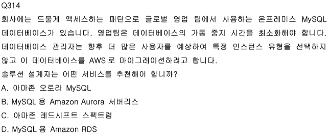 완전 관리형: 패치, 백업, 고가용성 등 AWS가 관리 → “완전히 관리되어야 합니다” 충족