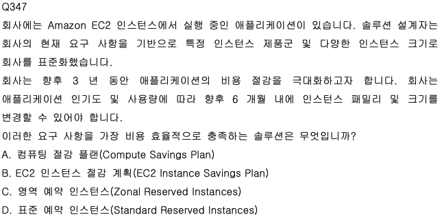 → 장기 할인(3년) + 인스턴스 패밀리·크기 변경 유연성이 동시에 필요함.