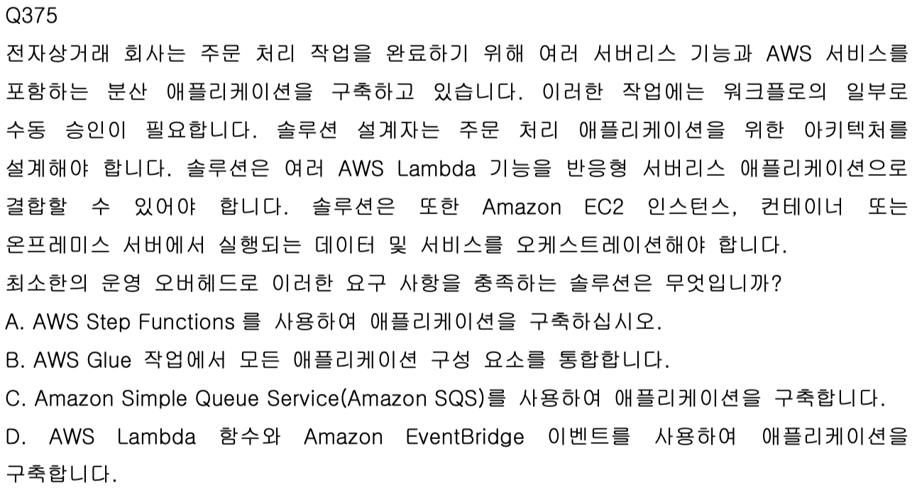 → 워크플로 오케스트레이션 + 서버리스(EC2 없음) + 분산·이벤트 기반 + 관리형이 필요함.