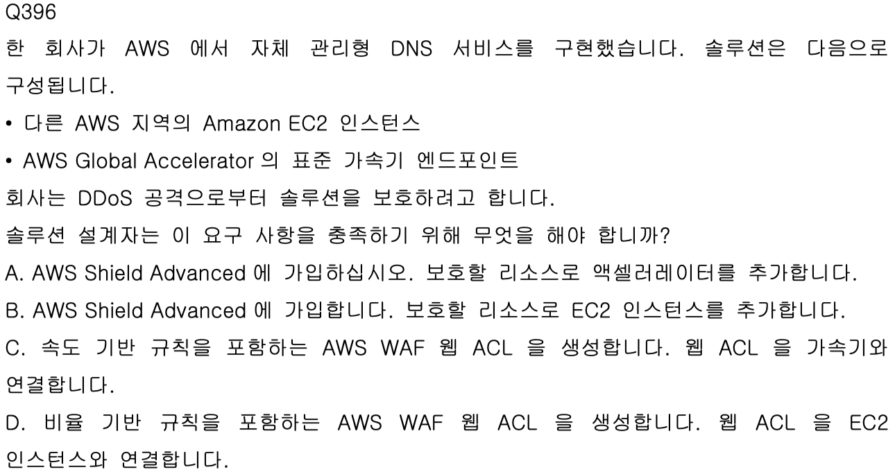 리소스 타입: Shield Advanced가 보호할 수 있는 리소스에는 Elastic IP, CloudFront, Global Accelerator, Route 53, ELB 등이 포함되고, 가속기를 추가하는 것이 올바른 사용법입니다.